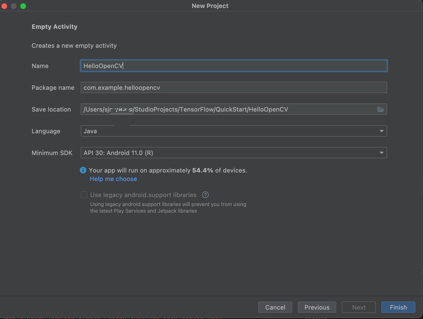 아래와 같이 모듈 네임을 OpenCV 로 설정.