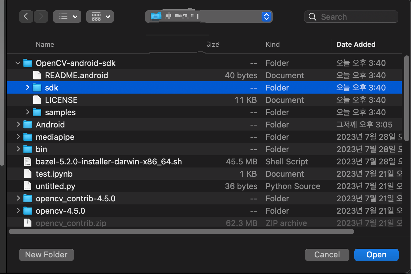 아래와 같이 노출. 아까 다운받은 SDK 경로를 찾아 기입